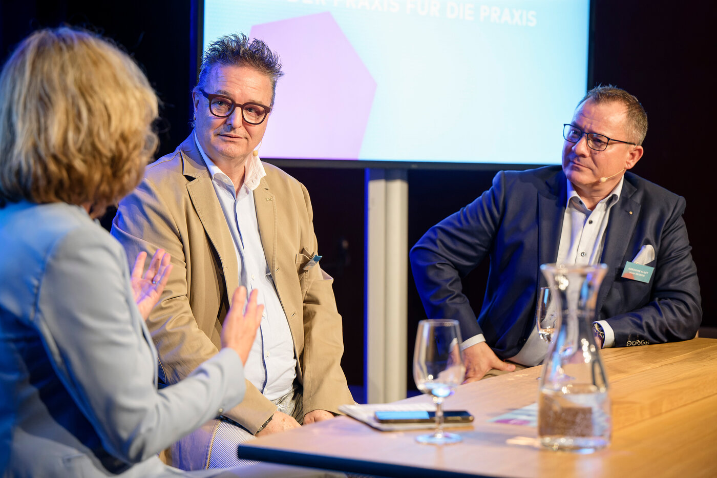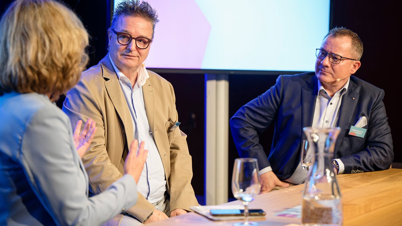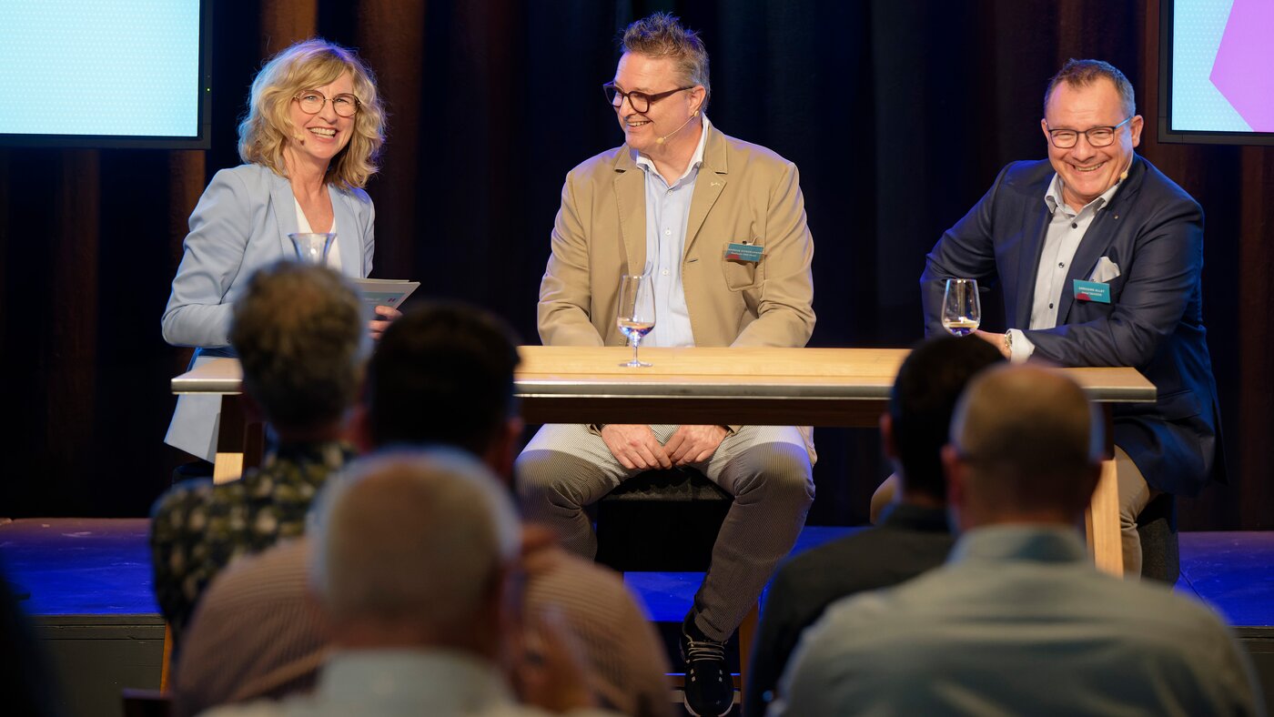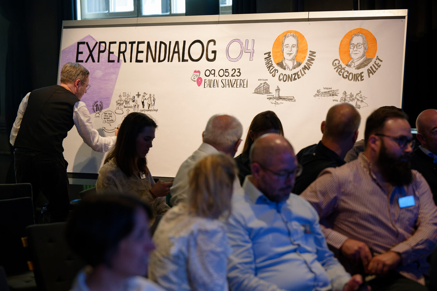 Moderatorin Ladina Spiess wollte von den beiden Podiumsgästen Markus Conzelmann, General Manager des Radisson SAS in Luzern und Grégoire Allet, Hoteldirektor im Seaside in Spiez wissen, wie sie ganz konkret den Alltag gestalten und vor welchen Herausforderungen sie stehen. Für Markus Conzelmann war klar, er wird entweder Hotelier oder Schauspieler. So betont er auch, dass man im Hotel stets „on Stage“ ist und kein Tag dem anderen gleicht. Von einer Ausbildungsstätte für Metzger zum Hotel für Feriengäste – keine leichte Aufgabe erzählt Grégoire Allet. Beide berichten, dass sich die Ansprüche und Wünsche der Gäste seit der Pandemie verändert haben. Mehr Urlaub und mehr Flexibilität in den Räumen sei gewünscht. Die Toleranz der Gäste nimmt ab und Kleinigkeiten führen zu schlechten Bewertungen im Internet. Keine einfache Aufgabe für die beiden erfahrenen Hoteliers. Der Fachkräftemangel spitzt sich auch in der Hotellerie immer mehr zu. Ihr Erfolgskonzept – als Führungsperson nahbar bleiben. Markus Conzelmann’s Türe zum Büro steht jedem Mitarbeitenden jederzeit offen und Grégoire Allet kennt die Namen und Geburtstage aller seiner Mitarbeitenden. Die Diskussion bot spannende Einblicke in eine kontrastreiche Herangehensweise die am Ende doch zum gleichen Schluss kommt: Vom Zimmermädchen bis zum Hoteldirektor - ohne Herzblut geht es nicht!