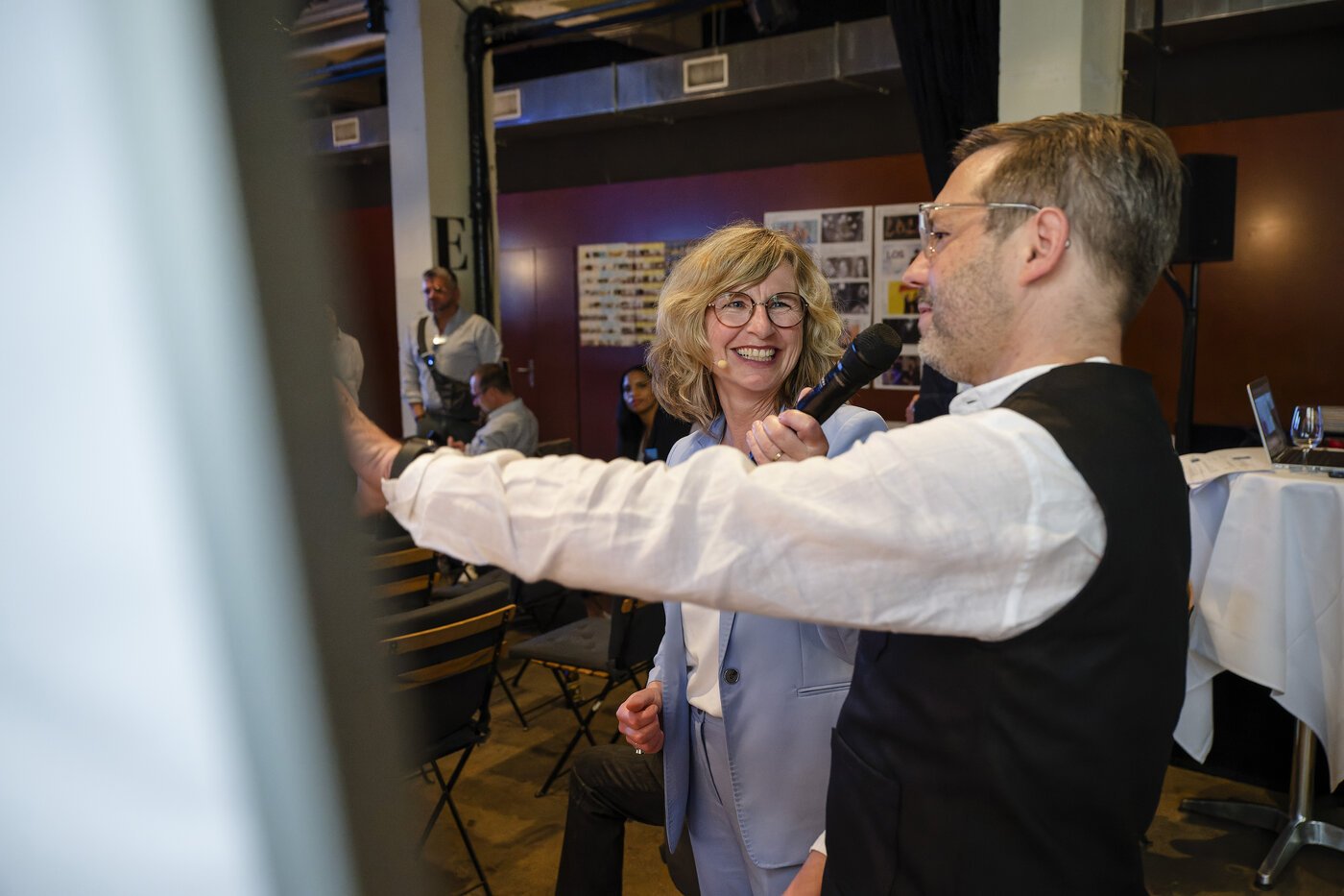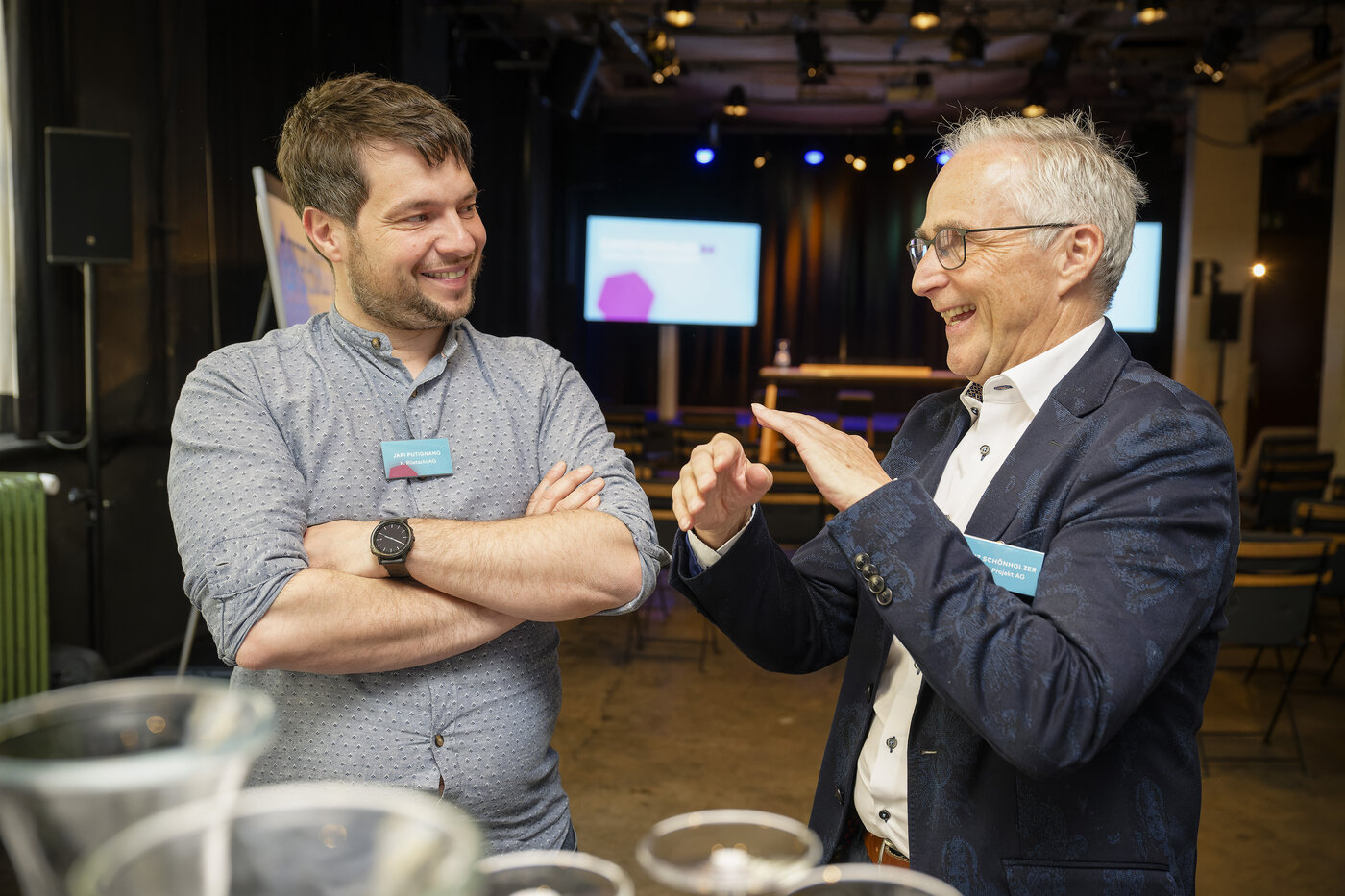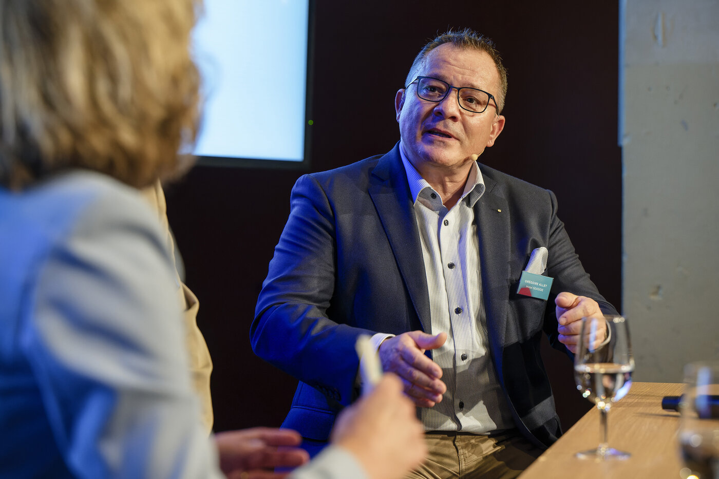 Moderatorin Ladina Spiess wollte von den beiden Podiumsgästen Markus Conzelmann, General Manager des Radisson SAS in Luzern und Grégoire Allet, Hoteldirektor im Seaside in Spiez wissen, wie sie ganz konkret den Alltag gestalten und vor welchen Herausforderungen sie stehen. Für Markus Conzelmann war klar, er wird entweder Hotelier oder Schauspieler. So betont er auch, dass man im Hotel stets „on Stage“ ist und kein Tag dem anderen gleicht. Von einer Ausbildungsstätte für Metzger zum Hotel für Feriengäste – keine leichte Aufgabe erzählt Grégoire Allet. Beide berichten, dass sich die Ansprüche und Wünsche der Gäste seit der Pandemie verändert haben. Mehr Urlaub und mehr Flexibilität in den Räumen sei gewünscht. Die Toleranz der Gäste nimmt ab und Kleinigkeiten führen zu schlechten Bewertungen im Internet. Keine einfache Aufgabe für die beiden erfahrenen Hoteliers. Der Fachkräftemangel spitzt sich auch in der Hotellerie immer mehr zu. Ihr Erfolgskonzept – als Führungsperson nahbar bleiben. Markus Conzelmann’s Türe zum Büro steht jedem Mitarbeitenden jederzeit offen und Grégoire Allet kennt die Namen und Geburtstage aller seiner Mitarbeitenden. Die Diskussion bot spannende Einblicke in eine kontrastreiche Herangehensweise die am Ende doch zum gleichen Schluss kommt: Vom Zimmermädchen bis zum Hoteldirektor - ohne Herzblut geht es nicht!