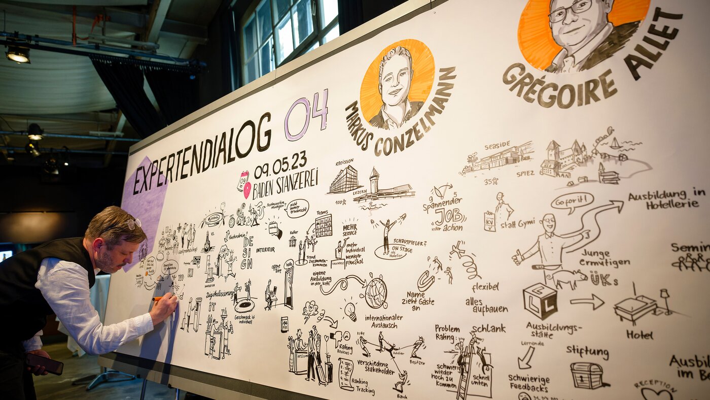 Wie werden Fachkräftemangel, Innovation oder Design in einer grossen Hotelkette resp. Einzelhotel angegangen? Wie funktionieren Führung, wer trifft Entscheidungen oder worauf legen sie Wert im Betrieb? Wie geht man mit schlechten Bewertungen im Internet um? Hinken Schweizer Hotels im internationalen Vergleich im Bezug auf Design und Innovation hinterher? Diese und andere Themen standen beim diesjährigen Expertendialog im Fokus.